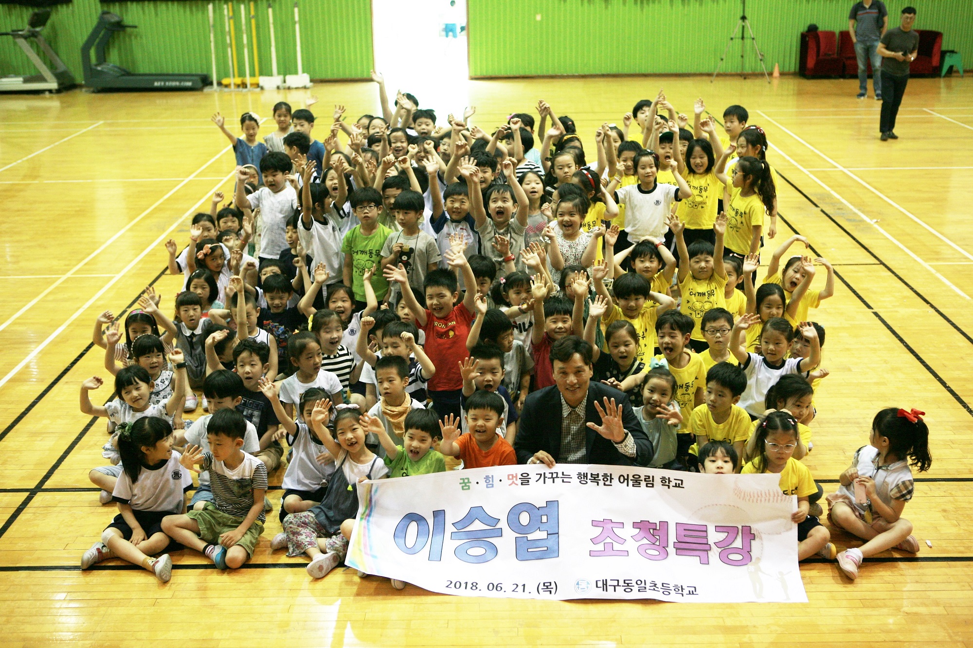 대구동일초등학교(교장 채영기)는 지난 6월 21일(수) 영원한 홈런타자 라이언 킹 이승엽 전 선수를 1일 강사로 초청해 전교생 900여명의 학생들을 대상으로 특강을 열었다.