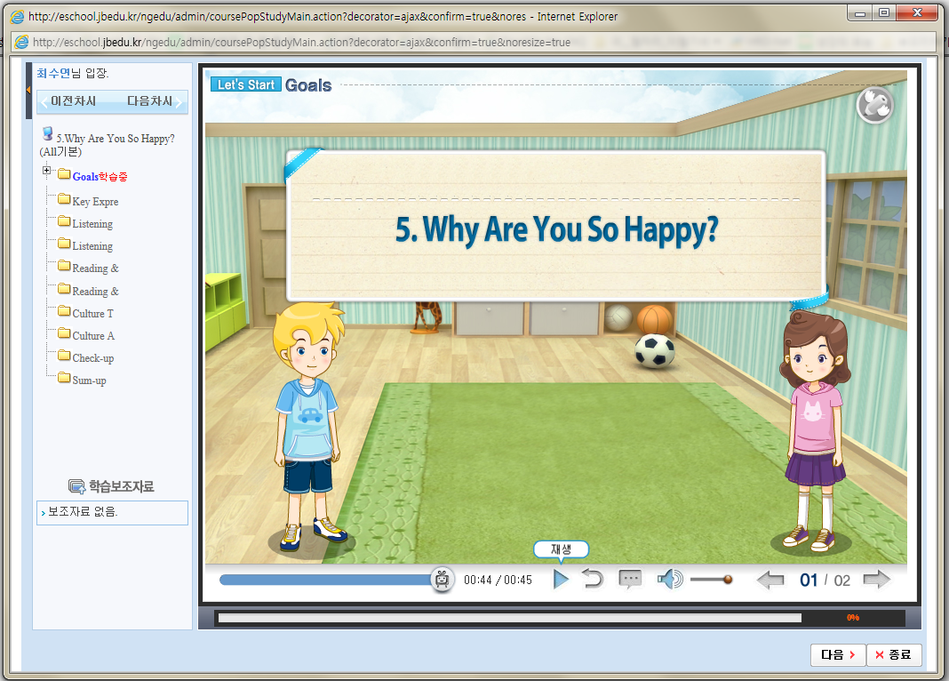 (다 듣고 오른쪽 위의 엑스표를 누르면 수업을 들었던 기록이 저장되지 않는다.)