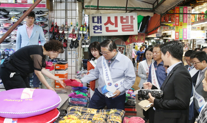 이날 산격시장을 방문한 교육감을 비롯한 직속기관장, 서부교육장 등 간부와 직원 140여 명은 미리 구입한 전통시장 온누리 상품권으로 추석 명절 제수용품과 식재료, 생필품 등을 구매할 계획이다.