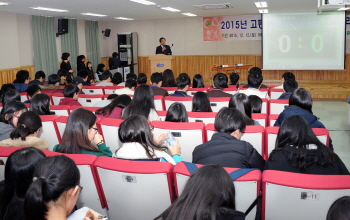 김석준 부산광역시교육감이 12일 오전 9시부터 오후 1시 30분까지 경남여자고등학교 시청각실에서 토론리그에 참여한 고등학교 동아리 학생 전체를 대상으로 열린 ‘2015년 고등학생 다같이 독서토론리그 한마당’에 참석해 인사말을 하고 있다.
