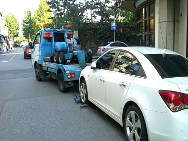 불법 주·정차 된 차량을 견인해 가고 있다.