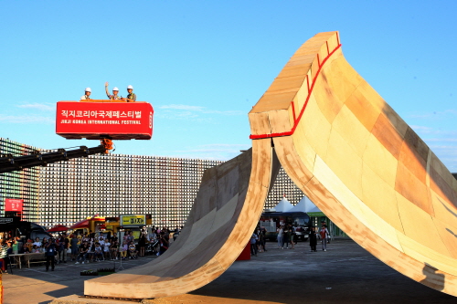 론 아라드는 퍼포먼스에 앞서 “파빌리온은 한옥과 사람 인(人)자에서 영감을 얻어 디자인 했으며, 이 공간이 직지코리아국제페스티벌에서 배움의 장이자 쉼터로 쓰여 기쁘다”고 말했다.