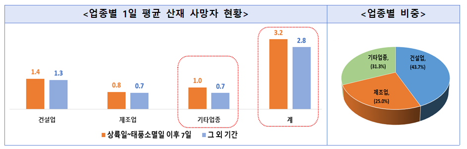 또한 “지난 ‘02년부터 20년간 우리나라에 상륙한 태풍을 고려하여 자체 분석한 산재 사망사고 현황을 조금 더 보완하여 현장에 필요한 안내자료를 차근차근 준비, 기업 자율의 안전관리체계 구축을 지원하는 데 도움을 줄 계획”이라고 밝혔다.