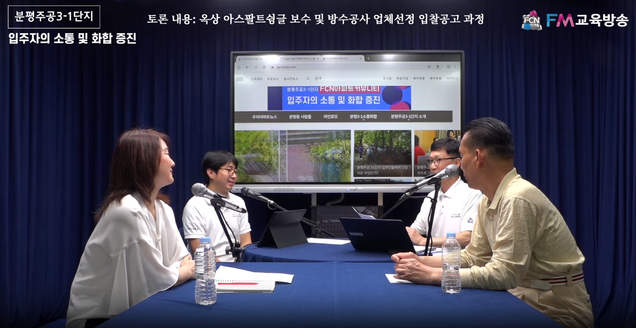 이승훈 주재기자는 “이번 FCN 아파트 커뮤니티 입주자 소통 및 화합 증진을 위한 토론 방송은 공동주택관리법 제21조 1항*에 의거 진행하게 됐다”고 밝혔다.