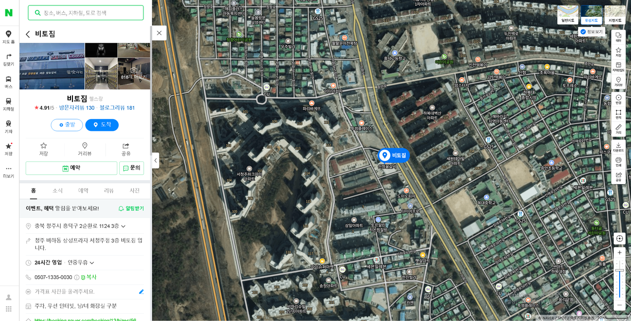 포털사이트에서 비토짐 검색으로 충북 청주시 흥덕구 비하동(2순환로) 거주자들은 쉽게 위치를 파악할 수 있다.