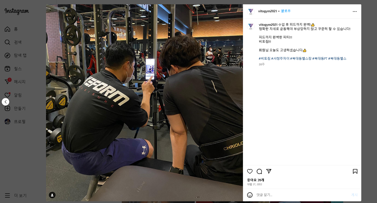 사진 설명: 등록 회원 운동 처방 <사진 출처= 인스타그램 갈무리 화면>