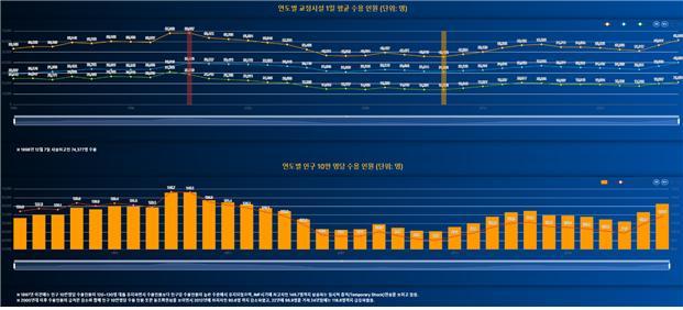 연도별 수용인원 및 인구 10만명당 수용 인원